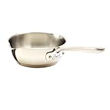 (More customer reviews)Don't be fooled. The cheap price should be a give away as to the quality of this. Very thin walls. Handle is long to prevent it from getting hot, but with the narrow base, the pan does not balance well on the burner and tends to tip over. All Clad, standard 1 qt. or 2 qt. sauce pan, with aluminum clad between SS will cost a bit more, but is really worth the extra investment.